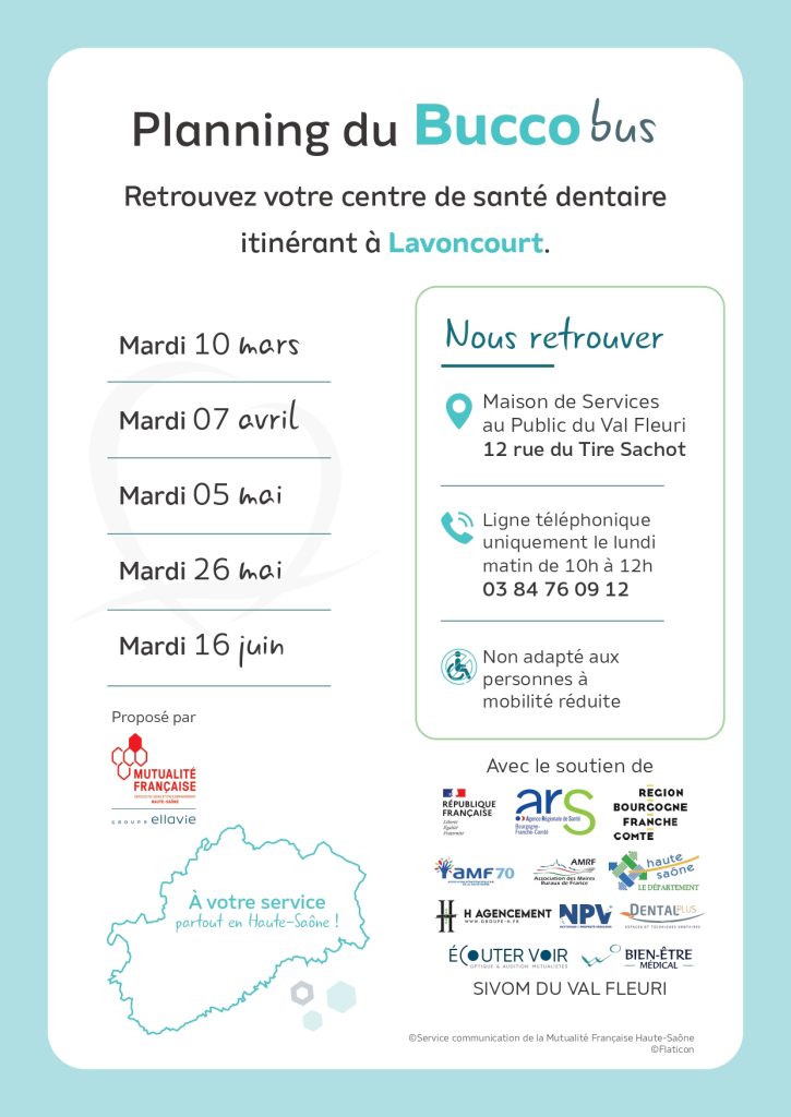 Symbole du « aller-vers » comme ce fut le cas pour la vaccination COVID, le buccobus revient à Lavoncourt et s’installe cette fois le mardi devant la France Services le mardi. A bord, Philippe Berthon, chirurgien-dentiste à la Mutualité Française de Haute-Saône et Bénédicte son assistante seront à la disposition des patients en mal ou éloignés de dentiste. Pour le SIVOM du Val Fleuri, partenaire accueillant et son président Jean-Paul Carteret, c’est une satisfaction de voir ce service de santé compléter même temporairement l’équipe de soins primaires et l’ensemble des services présents sur le site.